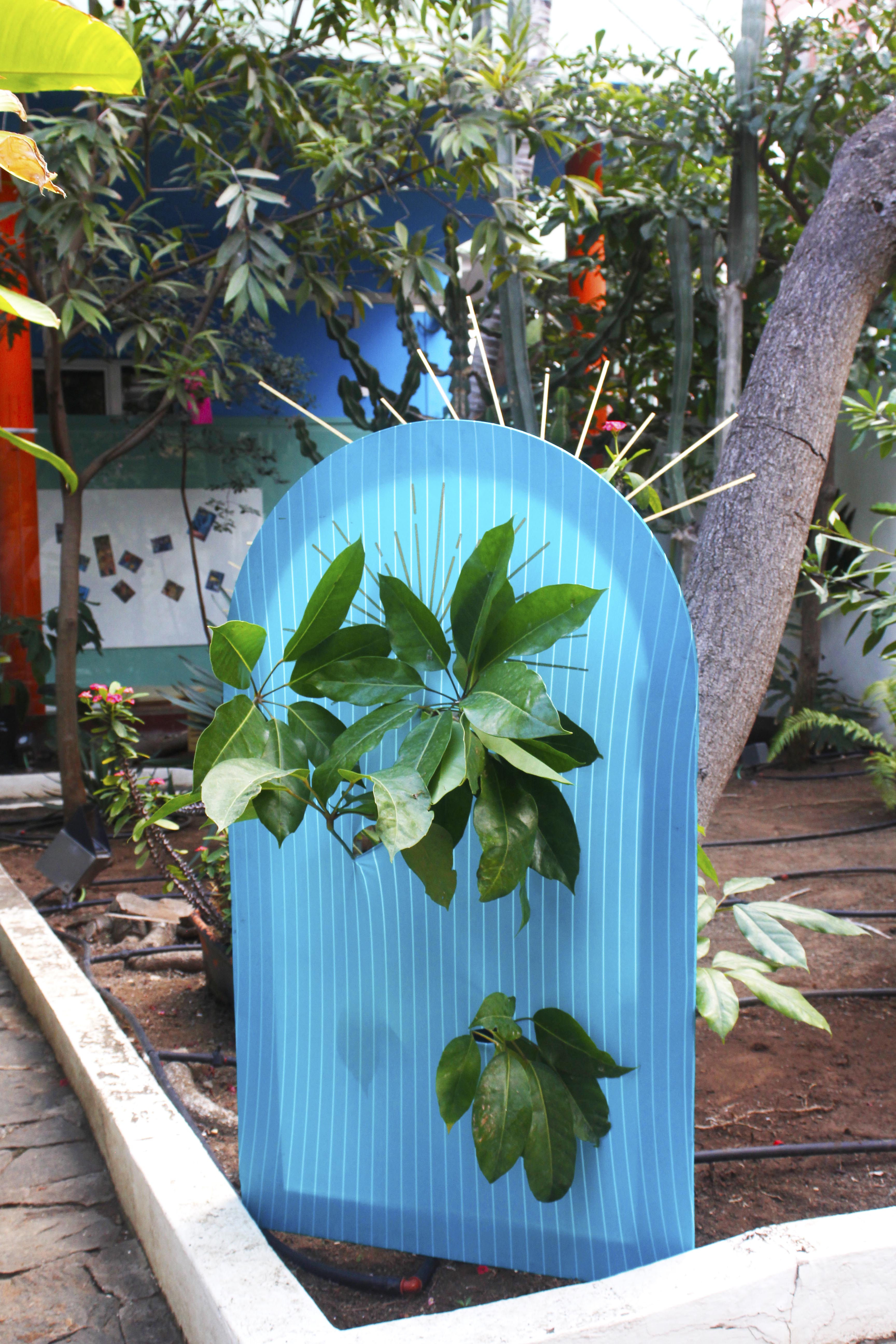La instalación «Divinas Plantas» parte de una pregunta tan simple como radical: ¿Qué ocurre cuando colocamos una planta en un altar divino? Q¿ que ocurre cuando aplicamos este mismo lenguaje de veneración, no a un ídolo de yeso o madera, sino al organismo vivo que hace posible la existencia humana?