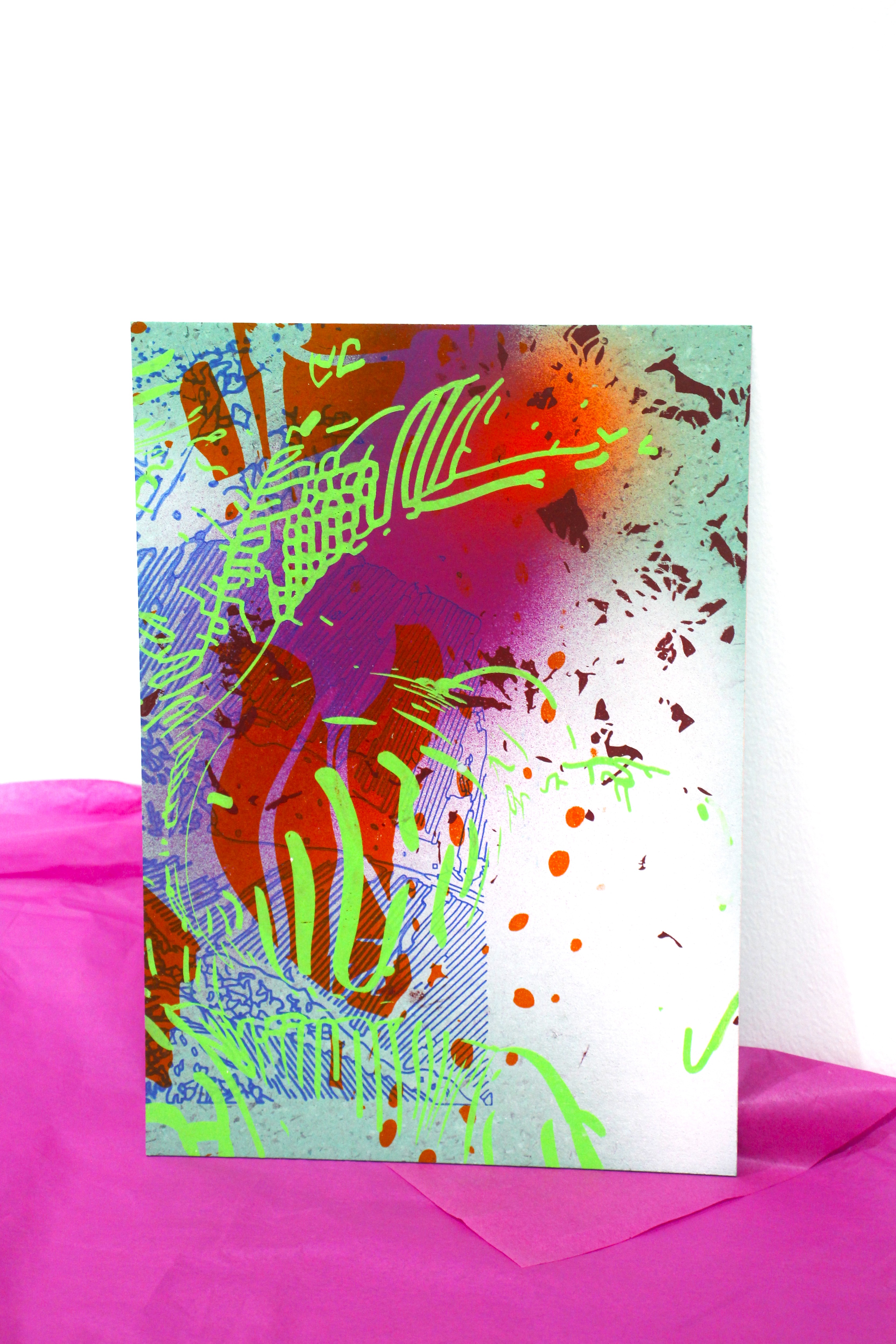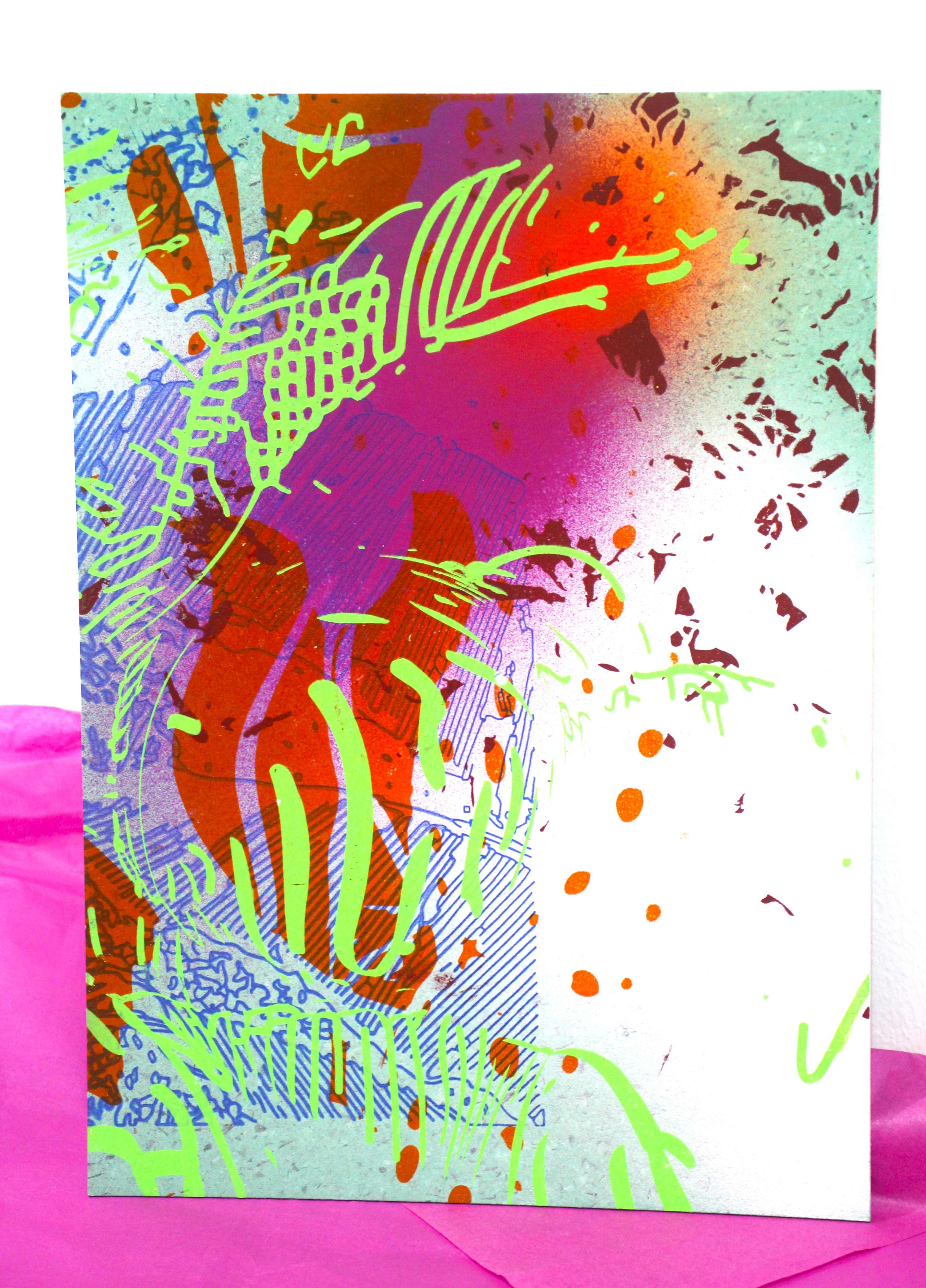 Spray y serigrafía sobre cartón 350 gr.