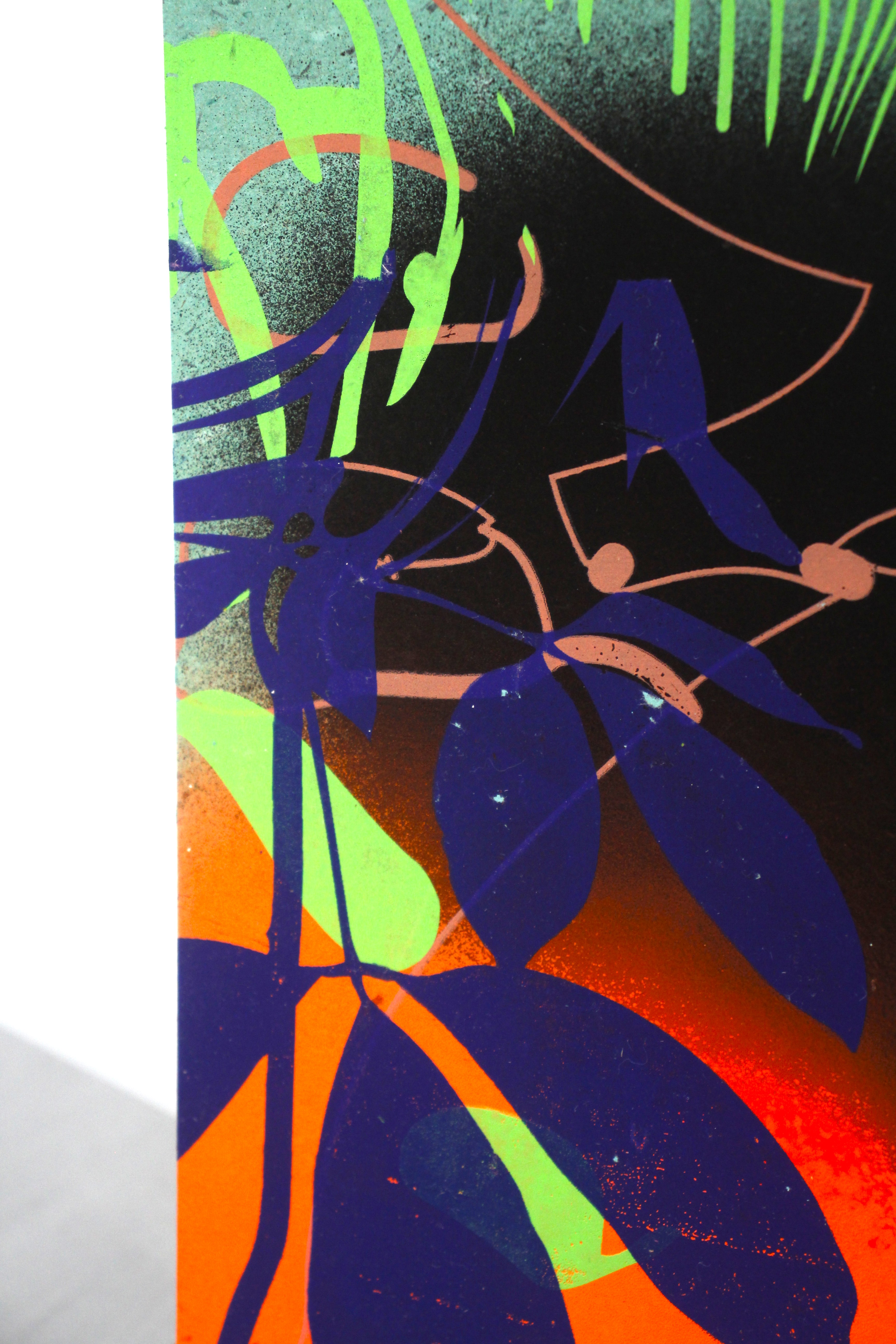 siluetas de plantas deformes convergen con las manchas más contestarías